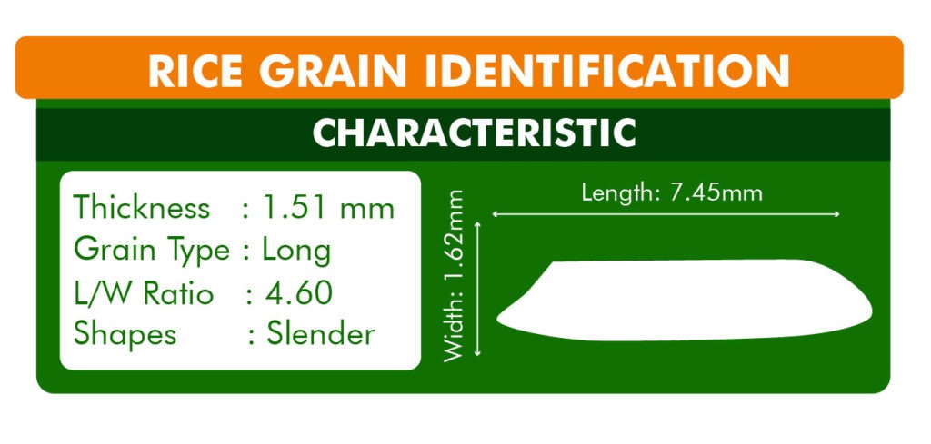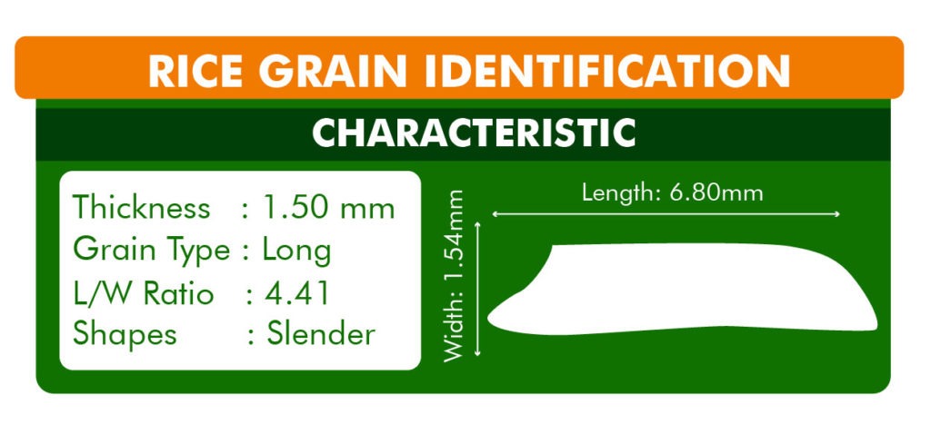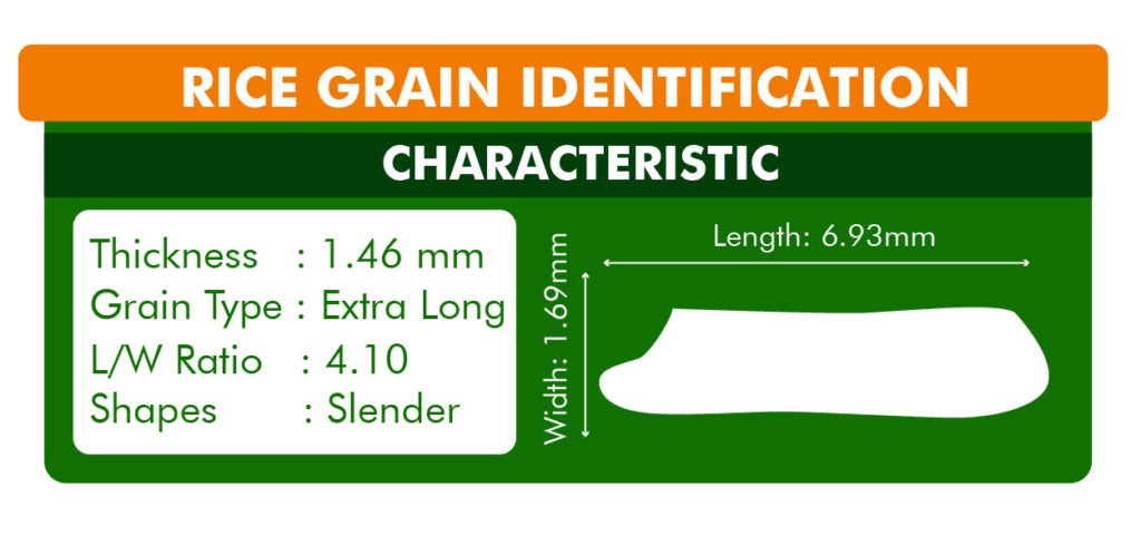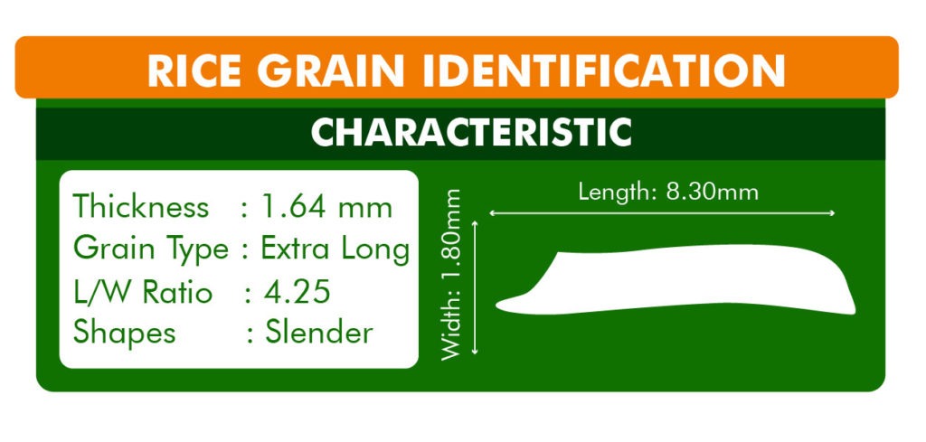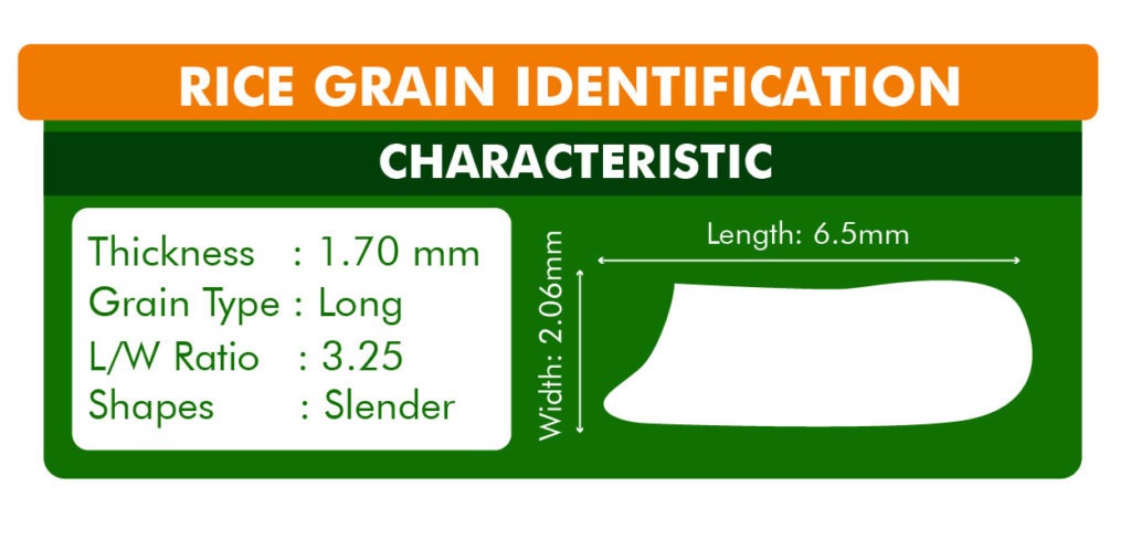 In comparison to IRRI-6, the grain of PK 386 elongates significantly with length and cooking. There is no thickness or width when cooking, and the elongation ratio is roughly 1.50.